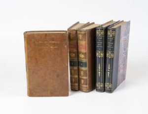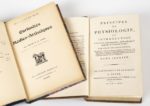 DUMAS (Charles-Louis) Principes de physiologie, ou introduction à la science expérimentale, philosophique et médicale de l'homme vivant. Paris, Crapelet, An VIII-1800, 3 vol. in-8 (sur 4), veau brun, dos lisse, ornés, inscription dor sur le 1er plat «5e prix Ecole impériale vétérinaire de Lyon». EDITION ORIGINALE. NASS. Curiosités médico-artistiques. Paris, Lib. mondiale, s.d., 2 vol. in-8, demi-rel. chag. bleu marine, dos lisse, ornés. Ens. de 5 vol.