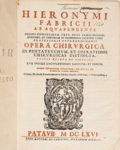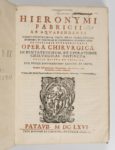 FABRIZIO Hieronymi Fabricii ab aquapendente. Patavii, Matthaei de Cadorimis, 1666, in-fol. 4 ff. - …