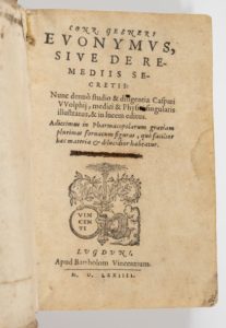 GESSNER (Conrad) Euonymus, sive, De remediis secretis. Lugduni, apud Bartholum Vincentium, 1574, …