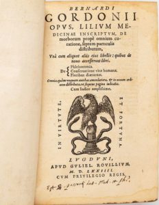 GORDON (Bernard de) Bernardi Gordonii opus, lilium medicinae inscriptum de morborum propre omnium …