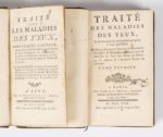 GUERIN (P.) Traité sur les maladies des yeux. Lyon, Reguilliat, 1769, in-12, veau marbr., dos à nerfs (rel. frottée). EDITION ORIGINALE. Bien complet des feuilles fautes à corriger et de la grande planche dépliante. DESHAIS GENDRON Traité des maladies des yeux & des moyens & opérations propres à leur guérison. Paris, Hérissant,1770, 2 vol. in-12, veau marbr., dos à nerfs, ornés. Ens. de 3 vol.