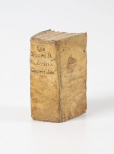 GUYBERT (Philibert) Le médecin charitable enseignant la manière de faire & préparer en la maison avec facilité et peu de frais les remèdes propres à toutes maladies. Paris, Sevestre, 1632, in-12, 2 ff. - 691 pp., vélin, trace de lacets. Incomplet du portrait. Usures aux premières pages dont le titre.