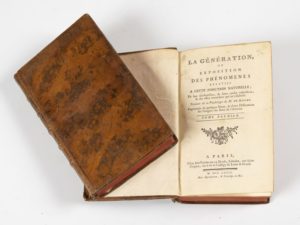 HALLER (Albrecht von) La génération ou exposition des phénomènes relatifs à cette fonction naturelle. Paris, La Doué, 1774, 2 vol. in-8, bas. marbr., dos à nerfs, orné (mq. aux coiffes). EDITION ORIGINALE FRANCAISE.