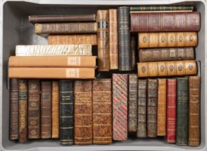 MANETTE de livres en état usagé, certains incomplets et dépareillés sur la MEDECINE, dont : DUGES, Manuel d'obstétrique ou traité de la science et de l'art des accouchements. Avec 24 planches h.t. représentant 46 figures. Qq.pl. rognées. - MAUNOURRY & SALMON, Manuel des accouchements Avec 2 planches. - RAULIN, Instruction succincte sur les accouchements. - BAUDELOCQUE, L'art des accouchements. 1806. - SABATIER, Traité complet d'anatomie. 1781 (3 vol.) - SCARPA, Traité pratique des maladies des yeux. 1802. - STOKES, Traité des maladies du coeur - ALIBERT, Nouveaux éléments de thérapeutique (2 vol.) - Tribut à la chirurgie (2 vol.) - PIGEAUX, Traité pratique des maladies du coeur - CAZEAUX, Traité théorique et pratique de l'art des accouchements. 1867. - Dictionnaire de santé. Tome 3. - BAILLY, Traité anatomico-pathologique des fièvres intermittentes. - MAREY, Physiologie médicale de la circulation du sang. 1863. - MAGENDIE, Précis élémentaire de physiologie.1834 - Préceptes sur la santé de gens de guerre. 1775. - Bell. Traité des plaies.1825. - DURAND-FARDEL, Traité clinique des maladies des vieillards. - BENNET, Traité pratique de l'inflammation de l'utérus. - HEVIN, Pathologie. 1785 (2 vol.).