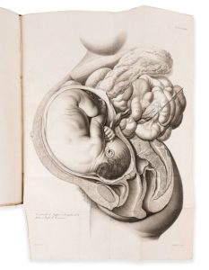 MAYGRIER (J.P.) Nouvelles démonstrations d'accouchements. Avec des planches en taille douce, accompagnées d'un texte raisonné propre à en faciliter l'explication, format in-folio. Paris, Bechet, 1822, in-fol., demi-rel. bas. fauve, dos lisse, orné (rel. mod.). EDITION ORIGINALE illustrée de 79 planches (la pl. 27-28 sur double page) hors-texte gravées sur acier par Forestier d'après les dessins d'Antoine Chazal. Incomplet du portrait en frontispice, qui manque souvent. Qq. moisissures, taches et petite galerie de vers à certaines planches.