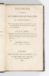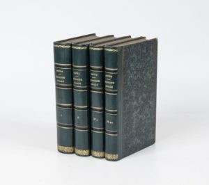 ORFILA Traité de médecine légale. Quatrième édition. Paris, Labé, 1848, 3 tomes en 4 vol. in-8, (le tome III est 2 parties), demi-rel. veau bleu, dos lisse, ornés. Avec 7 planches en couleurs. Fortes rousseurs. - Secours à donner aux personnes empoisonnées et asphyxiées. Deuxième édition. Paris, chez l'auteur, 1821, in-12, demi-rel. veau vert, dos lisse, orné. Ens. en 5 vol.
