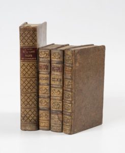 PETIT (Jean-Louis) Traité des maladies des os dans lequel on a représenté les appareils & les machines qui conviennent à leur guérison. Nouvelle édition. Paris, Cavelier 1767, 2 vol.in-12, veau marbr., dos à nerfs, orné (rel. us.). Nombreuses figures dans le texte. JODOCI lommii burani reiplucae nerviorum medico physici, commentar de sanitate tuenda in primun lib. de re medica Aurel. Cornelli Celsi. Amstelodami, 1745, in-12 bas. brune, dos à nerfs. PERIER (Philibert). L'ami de la santé pour tous les sexes et tous les âges. Paris, Delalain,1808, in-8, veau brun, dos lisse, orné. Suivi de : MONTAIN. Traité de l'apoplexie. Paris, 1811. Ens. de 3 vol.