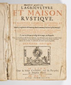 ESTIENNE L'agriculture et maison rustique. Dernière édition. Lyon, Candy, 1659, 8 ff. - 574 pp. …