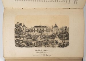 FRANCK Traité sur les vins du Médoc et les autres vins rouges et blancs de départements de la Gironde. Sixième édition. Bordeaux, Chaumas,1868, in-8, demi-rel. chag. prune, dos à nerfs, orné. Avec un frontispice, 36 gravures, 6 tableaux et une grande carte en couleurs in-fine. Epidermures sur les plats.