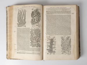 MATIOLI Histoire des plantes. S.L., (Lyon), s.d., in-fol., 58 ff. - 819 pp. - 10 ff., in-fol. demi-rel. bas. brune, dos nerfs (rel. très us.). Nombreuses illustrations dans le texte. Mq. les ff. 217-218, 332-333, 493-494. Le f. 227-228 est placé après la p. 466. Mouillures et rousseurs.