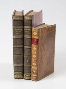 ANDREOSSY (Général) - Histoire du canal du midi ou canal de Languedoc. Nouvelle édition mise dans un nouvel ordre et considérablement augmentée. Paris, Imprimerie de Crapelet, An XIII -1804, 2 vol. in-4, demi-rel. veau prune, dos lisse, orné, inscription dor. au dos J. Favre. Avec un portrait, un tableau et 29 planches repliées. - Histoire du canal du midi connu précédemment sous le canal du Languedoc. Paris, Dufart, An VIII, in-8, bas. fauve, encadr. dor. sur les plats, dos lisse, orné (rel. us., éraflures sur les plats). Avec 5 tableaux et une grande carte. Ens. de 3 vol.