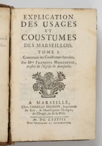 MARCHETTI (François) Explication des usages et coustumes des Marseillois. Tome 1 contenant les …