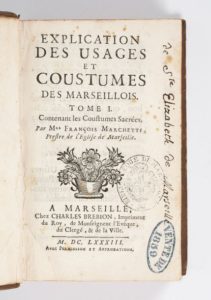 MARCHETTI (François) Explication des usages et coustumes des Marseillois. Tome 1 contenant les …