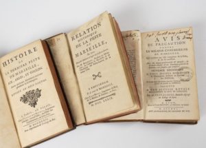 PESTALOZZI Avis de précaution contre la maladie contagieuse de Marseille. Lyon, Bruyset, 1721, in-12, bas. brune, dos à nerfs, orné, cachet de biblio sur le titre. BERTRAND. Relation historique de la peste de Marseille en 1720. Nouvelle édition. Amsterdam, et se vend à Marseille, Mossy, 1779, in-12, bas. marbr., dos à nerfs, orné (rel. frottée). MARTIN (A.). Histoire de la dernière peste de Marseille, Aix, Arles et Toulon. Avec plusieurs aventures arrivées pendant la contagion. Paris, Paulus-du-Mesnil, 1732, in-12, veau brun, dos à nerfs (mq. aux coiffes). Ens. de 3 vol.