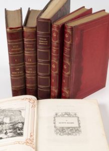ROUTIER (le) des provinces méridionales. Toulouse, Pablos, 1842, in-4, demi-rel. chag. grenat, dos à nerfs, orné de caissons dor. (rel. mod.). Avec 13 gravures h.t. dont une dépliante. SOUVENIRS DU MIDI. Paysages, marines, portraits, monumens, costumes. Marseille, 1839, in-4, demi-rel. chag. noir, dos à nerfs. EDITION ORIGINALE Illustrée de 49 lithographies hors-texte. Rousseurs. LIENARD. Les marseillais et leurs titres historiques depuis la fondation de la colonie phocéenne jusqu'en 1835. Paris, Marseille, Bouselet & Bellue, 1867, 2 vol. in-4, demi-rel. chag. rouge, dos à nerfs, orné, tr. dor. (taches sur le 1e plat du vol. 2). Nombreuses planches hors-texte. ROUX-ALPHERAN. Les rues d'Aix ou recherches historiques sur l'ancienne capitale de la Provence. Aix. Aubin, 1848, 2 vol. in-4, bas. rouge, dos à nerfs, ornés (rel. frottées). Ens. de 6 vol.