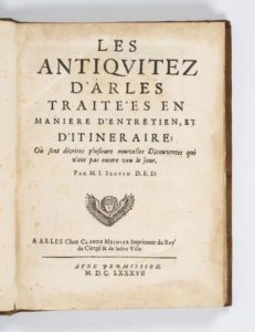 SEGUIN (J.) Les antiquitez d'Arles traitées en manière d'entretien et d'itinéraire. A Arles, …