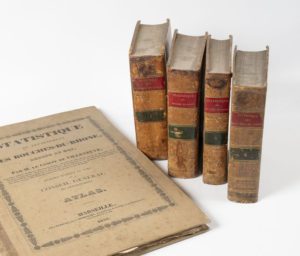 VILLENEUVE - Statistique du département des bouches du Rhône dédiée au Roi. Marseille, Ricard, 1821-1829, 4 vol. in-4, demi-rel. bas. fauve, dos lisse, pièce de titre et de tomaison rouge et verte (rel. très us.). - Statistique du département des bouches du Rhône dédiée au Roi. Atlas. Marseille, Feissat, 1834-1826, in-fol. demi-rel. toile beige couv. ill. Avec 25 planches. Rousseurs. Ens. de 5 vol.