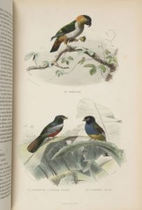 BUFFON Oeuvres complètes de Buffon. Avec des extraits de Daubenton. Tome 5 et tome 6. Paris, Furne, 1866, 2 vol. in-4, demi-rel. chag. vert, dos à nerfs (rel.us. et déboîtée, dos décol.,). Avec de nombreuses planches en couleurs.