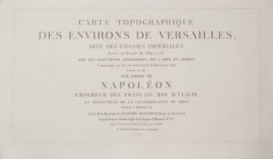 Carte topographique des environs de Versailles, dite des chasses impériales levée et dressée de 1764 à 1773. Commandés par feu M. Berthier, terminé en 1807 par ordre de Napoléon. S.L, au dépôt de la guerre, s.d. [1807], in-plano, en feuilles. Recueil de 13 feuillets. Incomplet du titre et du plan d'assemblage.
