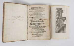 POZZO Perpectivae pictorum et architectorum. Augsburg,1708-1711, 2 vol. in-4, plein papier, dos à nerfs (rel. us.). Tome 1 : Titre restauré, 102 planches. Tome 2 : Frontispice, 118 planches. Incomplet des pl.16-48-64-71-76-79-80-87-89-95-103-104-107-112. Fortes mouillures, qq pl. restaurées et us.