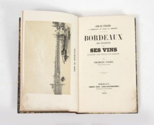 COCKS (Charles) Bordeaux, ses environs et ses vins classés par ordre de mérite. Bordeaux, Peret & fils, 1850, in-8, demi-rel ; veau rouge, dos lisse, orné couv. conserv. Avec un frontispice, plan et 3 gravures hors-texte. Quelques taches.