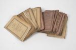VIEILLOT (Louis Pierre) et autres Faune française ou Histoire naturelle, générale et particulière des animaux qui se trouvent en France. A Paris, Chez F.-G. Levrault..., Imp. de Plassan. Ensemble comprenant : * quatorze fascicules de texte, brochés, In-8. Feuillets non coupés. Livraisons : 1 et 2 (80 pp.) - 3 et 4 (96 pp.) - 5 et 8 (96 pp. non coupées) - 13 et 14 (96 pp. non coupées) - 18 (80 pp. non coupées) - 19 (80 pp.) - 20 (81 pp., de la p. 81 à 160) - 23 (81 pp., de la p. 161 à 240) - 24 (81 pp., de la p. 81 à 160) - 25 (79 pp., de la p. 177 à 256) - 26 (79 pp., de la p. 97 à 176 ) - 27 (81 pp., de la p. 161 à 240) - 28 (79 pp., de la p. 241 à 320) - 29 (63 pp., de la p. 177 à 240). * six fascicules de planches en couleurs, en feuillets, In-8. Livraisons : 2ème (10 pl. Araignées) - 12ème (22 pl. Poissons cartilagineux ou osseux) - 13ème (10 pl. Crabes ; 2 pl. numérotées 4, différentes) - 14ème (32 pl. : 3 pl. Mammifères carnassier, pl. 3 à 10 manquantes ; 1 pl. n° 25 Rongeurs ; 18 pl. Reptiles, pl. 11 manquante ; 8 pl. Actinozoaires, dont 4 pl. Echinodermaires, 2 pl. Zoophytaires, 2 pl. Zoanthaires ; plusieurs pl. manquantes ; 2 pl. Chétopodes n° 9 et 14) - 15ème (2 pl. Mollusques, n° 5 et 5A) - 22ème (35 pl. : 19 pl. Coléoptères Pentamérés, pl. 18 manquante ; 6 pl. Hémiptères Hétéroptères ; 2 pl. Orthoptères ; 8 pl. Hyménoptères, pl. 1 manquante ; 2 pl. Nevroptères) - 24ème (78 pl. ; Mollusques, 20 pl. Céphalés ; 6 pl. Lamellibranches ; 6 pl. Pulmobranches ; 46. pl. Lépidoptères). Salissures, piqûres, taches, rousseurs, déchirures, qlq. trous, manques.