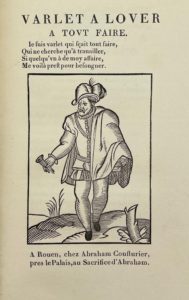 BORDEAUX (Christophe de). Varlet a louer a tout faire. Rouen, Abraham Cousturier, s.d. [Paris, Pinard, 1830]. – BORDEAUX (Christophe de). Chambriere a louer, a tout faire. Ibid., s.d. [Paris, Pinard, 1830]. 2 pièces en un volume in-12, demi-maroquin bleu marine avec coins, dos lisse orné, non rogné (Bauzonnet). Tirage à 42 exemplaires chacun, ceux-ci un des 32 sur hollande. Coiffes abîmées.
