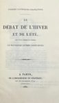 Paris, Imprimerie Crapelet, 1830. In-4, demi-cuir de Russie fauve, dos lisse titré en long (Reliure de l'époque).Réimpression tirée à 100 exemplaires pour la collection de Poésies gothiques françoises de Louis-Catherine Silvestre. Bechtel cite deux éditions gothiques du Débat de l'hiver et de l'été, publiées toutes deux à Paris vers 1530.