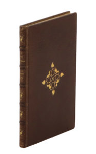 Paris, en la rue sainct Jacques aux Cicongnes, 1552. In-16, maroquin brun, grand fleuron doré au centre, dos orné de petits fleurons dorés, dentelle intérieure, tranches dorées (Capé).Édition originale de cet opuscule rarissime sur la règle successorale du trône de France connue sous le nom de loi salique. L'ouvrage, dédié à Henri II, est précédé d'un dizain de Martin Mesnart.