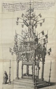 Son mausolée est représenté sur une grande planche dépliante gravée en taille-douce par Cornelis Galle d'après Jacques Francquart.