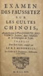 [MAIGROT (Charles)] — Examen des faussetez sur les cultes chinois avancées par le P. Joseph Jouvenci, Jésuite, dans l'Histoire de la Compagnie de Jésus. Traduit d'un écrit latin composé par le R. P. Minorelli. S.l.n.n.,