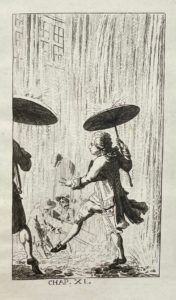 1787. Petit in-4, cartonnage de papier bleu, étiquette de titre manuscrite (Reliure de l'époque).Très rare suite de 96 eaux-fortes originales de Balthasar Anton Dunker (1746-1807), très spirituelles, accompagnées de 63 pp. d'explication.