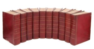 Genève, Paul Barde ; Paris, Moutard & Mérigot, 1785-1786. 10 volumes in-8, maroquin rouge, filet doré, dos lisse fileté, torsade sur les coupes, dentelle intérieure, tranches dorées (Reliure de l'époque).Édition originale de la traduction française de Pierre Le Tourneur, établie sur la troisième édition anglaise du grand roman de Richardson, qui était aussi célèbre et admiré en France qu'en Angleterre. Elle est plus exacte et surtout plus complète que la traduction de l'abbé Prévost, parue en 1751.