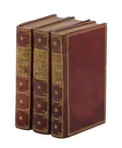 Paris, Veuve Guillaume Cavellat, 1597-1598. 6 tomes en 3 volumes in-16, maroquin rouge, triple filet doré, dos lisse orné, dentelle intérieure, tranches dorées (Reliure du XVIIIe siècle).Une des meilleures éditions de ce fameux recueil de récits merveilleux mettant en scène force prodiges, monstres, démons et sorciers.