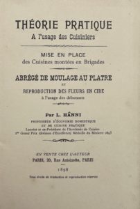 HÂNNI (Léopold) — Théorie pratique à l'usage des cuisiniers. Mise en place des cuisines montées en brigades. Abrégé de moulage au plâtre et reproduction des fleurs en cire à l'usage des débutants.