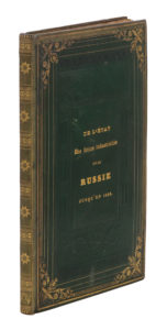 Saint-Pétersbourg, Schulz & Bénézé, 1834. In-8, maroquin vert, multiples filets et fers d'angles dorés en encadrement, importante plaque estampée à froid au centre contenant le titre doré sur le premier plat et un fer à la cathédrale sur le second, dos lisse orné, dentelle intérieure, doublure de percaline moirée bleue encadrée d'une roulette à froid, tranches dorées (Reliure de l'époque).Édition originale d'une grande rareté, publiée en français à Saint-Pétersbourg et dédiée au futur tsar Alexandre II, alors grand-duc héritier.