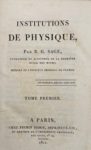 Les Institutions de physique, en trois tomes, sont ornées d’un portrait de l'auteur gravé par Beauvarlet d'après F.-G. Colson. On a relié dans le quatrième volume les Opuscules de physique de 1813 et le Supplément au premier ouvrage paru en 1812.