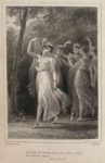 Londres, J. F. Dove, 1827. Petit in-12, maroquin rouge à long grain, plats ornés d’un décor de filets obliques formant losange et de fers dorés, dos orné, dentelle intérieure, tranches dorées et ornées en gouttière d'une peinture originale (Reliure anglaise de l’époque).Frontispice et titre gravés par C. Heath d’après H. Corbould.