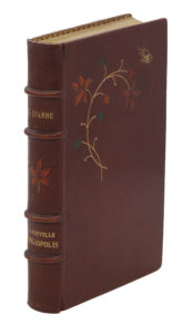 Paris, Henri Floury, 1897. In-12, maroquin havane, décor mosaïqué et doré sur le premier plat (lis et papillon), dos orné de même, dentelle intérieure, tête dorée, non rogné, couverture et dos (Reliure de l'époque).Édition originale de ce livre charmant sur la bibliophilie fin-de-siècle.