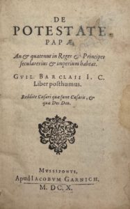 BARCLAY (William) — De potestate papæ ; an et quatenus in reges et principes secularesius et imperium habeat.