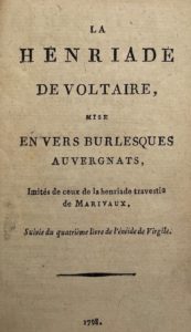 [FAUCON (Amable)] — La Henriade de Voltaire mise en vers burlesques auvergnats. S.l.n.n.,