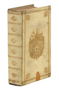 Amsterdam, Henrik Wetstein, 1688. In-8, vélin rigide, roulette dorée, armoiries au centre et aux angles, dos lisse orné des mêmes armes répétées, tranches mouchetées (Reliure hollandaise de l'époque).Seconde édition, ornée d'un titre-frontispice gravé par Gérard de Lairesse.