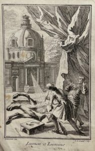 BOURGELAT (Claude). Élémens d’hippiatrique, ou nouveaux principes sur la connoissance et sur la médecine des chevaux. Tome second. Lyon, Declaustre, Duplain, 1751-1753. 2 volumes in-8 (sur 3), brochés, couvertures en joli papier dominoté, non rognés. Édition originale du second des deux tomes parus, formé de deux volumes illustrés d’un frontispice et de sept vignettes en-tête par Delamonce. Incomplet du premier tome, paru en 1750 ; couvertures abîmées, manque une portion d’un plat. Mennessier, I, 157.