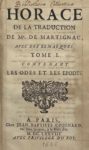 HORACE — Horace, de la traduction de Mr de Martignac, avec des remarques. Tome I, contenant les Odes et les Épodes.