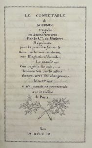DESCHAMPS DE SAINT-AMAND (Jacques) — Mélanges manuscrits. Thermidor an 13, août 1809. – Le Connétable de Bourbon. Tragédie en 5 actes et en vers, par le Cte de Guibert.
