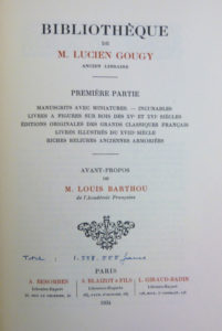 [GOUGY] — Bibliothèque de M. Lucien Gougy, ancien libraire.