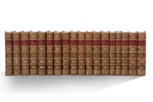 BERNARDIN DE SAINT-PIERRE, Jacques-Henri (1737 - 1814) OEuvres complètes... mises en ordres et précédées de la vie de l'auteur par L. Aimé-Martin. Paris : Méquignon-Marvis, 1820. 18 volumes petit in-12 (non collationnés), basane marbrée de l'époque, dos lisse orné, pièces de titre et de tomaison de basane rouge et olive, roulette dorée autour des plats et sur les coupes. Seconde édition collective. (Manque le volume contenant l'Essai sur la vie et les ouvrages de Bernardin de Saint-Pierre)