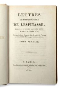 LESPINASSE, Julie de (1732 - 1776) Lettres de mademoiselle de Lespinasse, écrites depuis l'année …