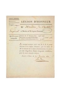 HOUDON Jean-Antoine (1741 - 1828) P.S. «Houdon», 30 janvier 1812 ; 1 page in-4 en partie impr. à en-tête Légion d'honneur. Rare signature du grand sculpteur. Reçu de son traitement semestriel comme membre de la Légion d'honneur, soit 122 F 50.