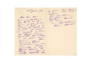 MONET Claude (1840-1926) L.A.S. «Claude Monet», Giverny 25 juin 1897, à Jules CHÉRET ; 1 page et demie in-8 à en-tête de Giverny. Il doit envoyer des toiles à M. Montaignac : «j'en ai profité pour y joindre la vôtre le priant de vous la faire parvenir aussitôt», ne pouvant venir à Paris. Il prie Chéret de lui dire la date de son départ : «Je serais très désireux de voir vos décorations»... On joint une L.A.S. de Maximilien LUCE à Mme Victor Joze.